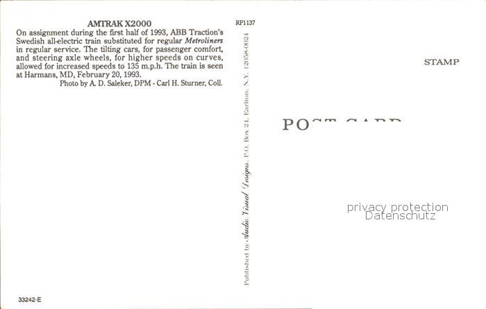 72292532 Eisenbahn Amtrak X2000 Harmans MD KatCode 22040000000300