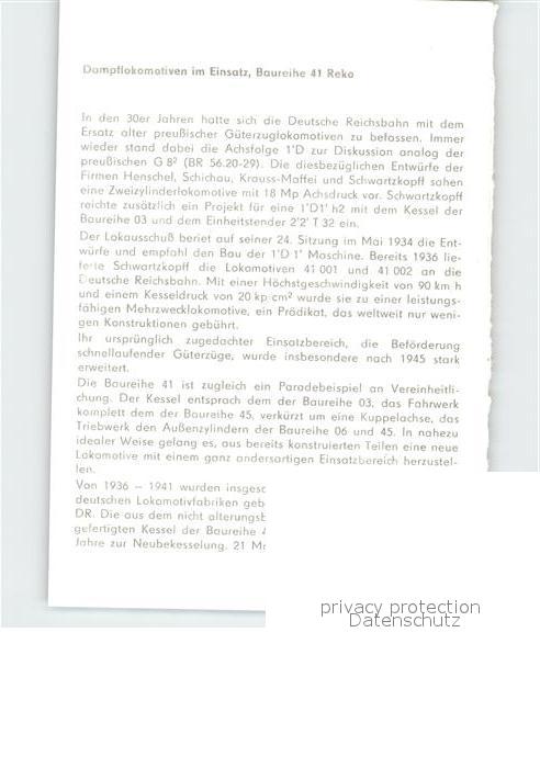 Eisenbahn Baureihe 41 Reko postalisch nicht gelaufen Keine Postkarte (siehe scan) Erhaltung siehe scans