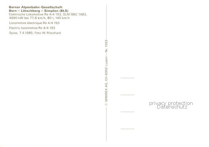 Eisenbahn Berner Alpenbahn BLS Lokomotive 193 postalisch nicht gelaufen Erhaltung siehe scans [IrynaD87]