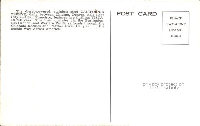 Eisenbahn California Zephyr postalisch nicht gelaufen Erhaltung siehe scans