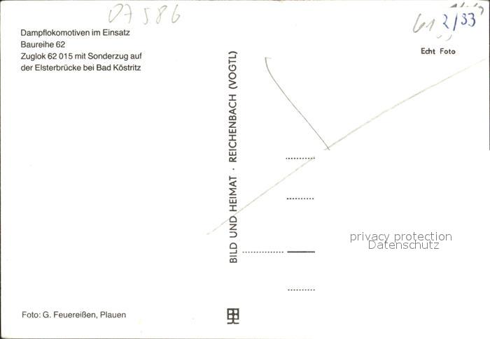 Eisenbahn Dampflokomotive Zuglok 62-015 Sonderzug Elsterbruecke Bad Koestritz postalisch nicht gelaufen Erhaltung siehe scans