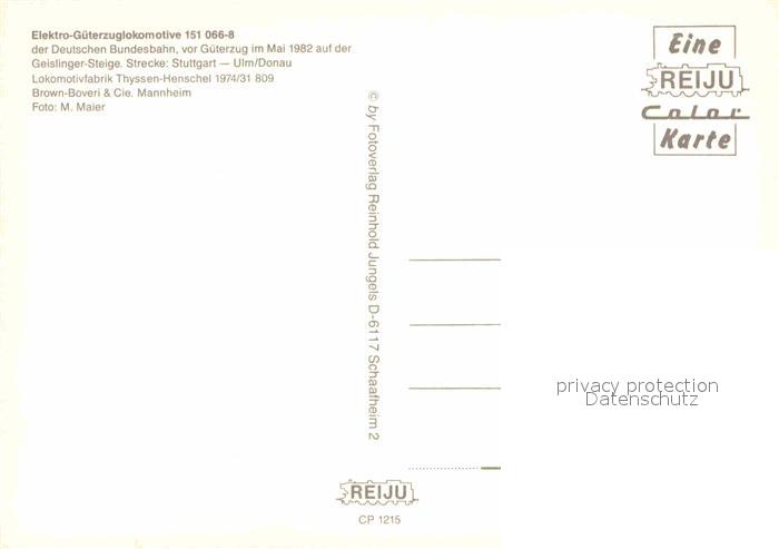 72804986 Eisenbahn Elektro-Güterzuglokomotive 151 066-8 Deutsche Bundesbahn Geislinger-Steige KatCode 22040000000300