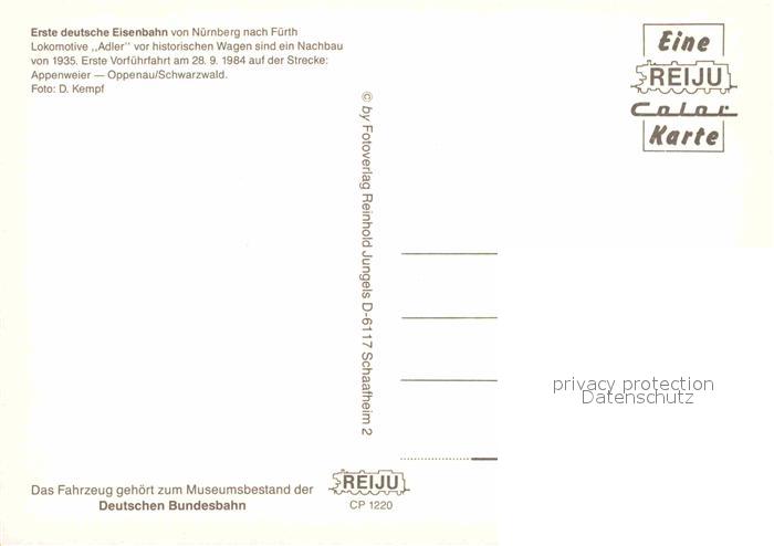 Eisenbahn Erste deutsche Eisenbahn Nuernberg Lokomotive Adler postalisch nicht gelaufen Erhaltung siehe scans [PaolaD17]