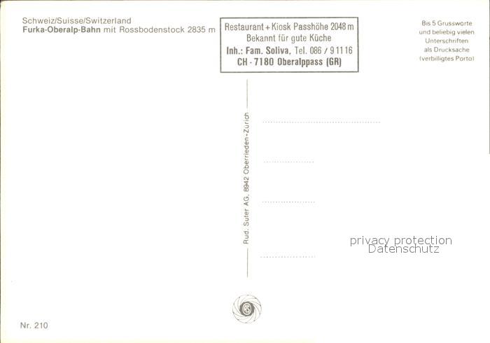 Eisenbahn Furka-Oberalp-Bahn Rossbodenstock postalisch nicht gelaufen Erhaltung siehe scans