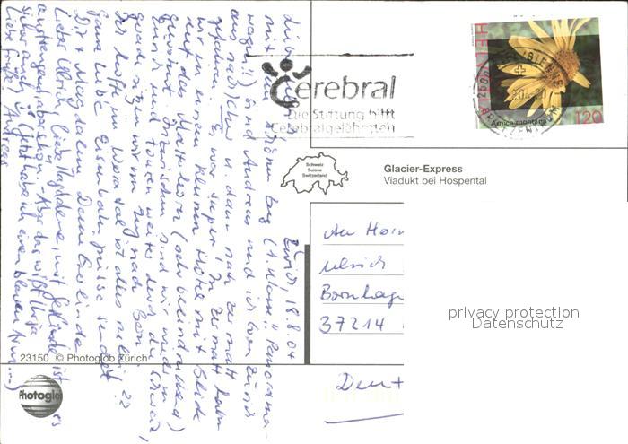 alte Postkarte Eisenbahn Glacier-Express Viadukt Hospental postalisch gelaufen Erhaltung siehe scans