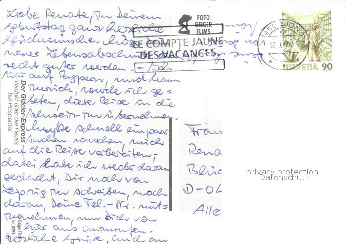 alte Postkarte Eisenbahn Glacier-Express Viadukt Reuss Hospental postalisch gelaufen Erhaltung siehe scans [PaolaD17 kt110box]