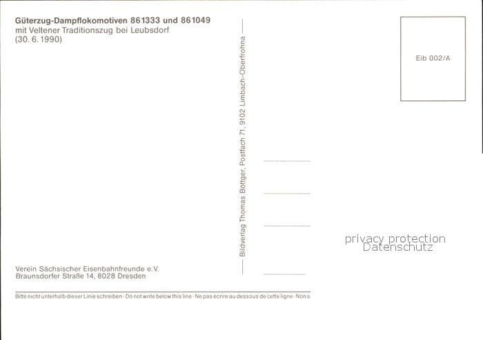 Eisenbahn Gueterzug-Dampflokomotive 861333 und 861049 Leubsdorf postalisch nicht gelaufen Erhaltung siehe scans