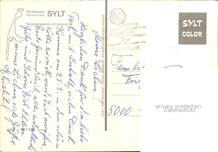 alte Postkarte Eisenbahn Hindenburgdamm Autozug Sylt postalisch gelaufen Erhaltung siehe scans [PaolaD17]