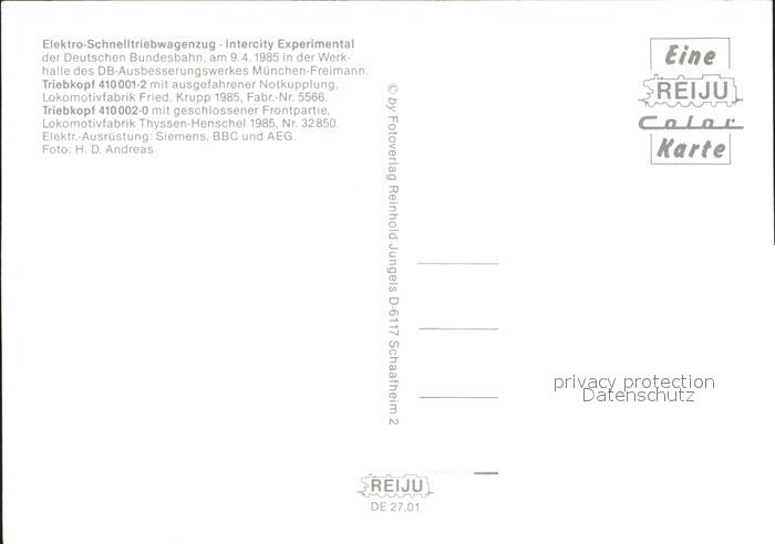 Eisenbahn ICE Deutsche Bahn Triebkopf 410001-2 Triebkopf 410002-0 postalisch nicht gelaufen Erhaltung siehe scans