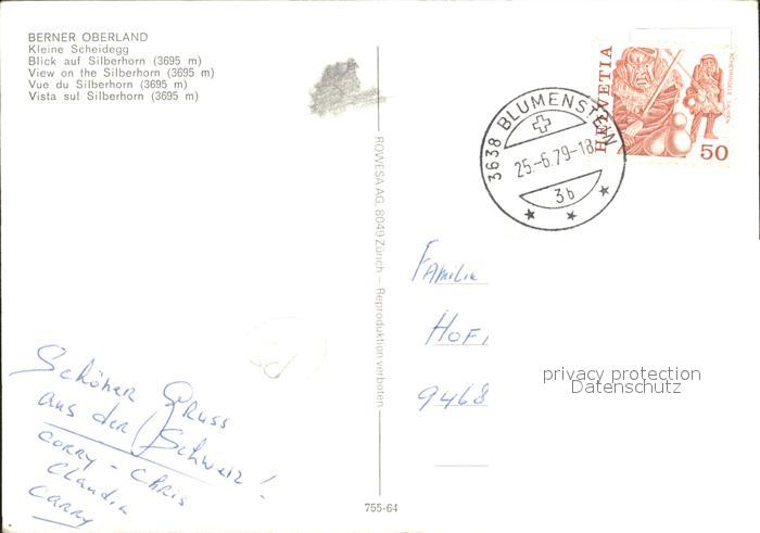 alte Postkarte Eisenbahn Kleine Scheidegg Silberhorn Berner Oberland postalisch gelaufen Erhaltung siehe scans