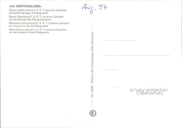 Eisenbahn La Centovallina Ponte Lago di Palagnedra postalisch nicht gelaufen Erhaltung siehe scans