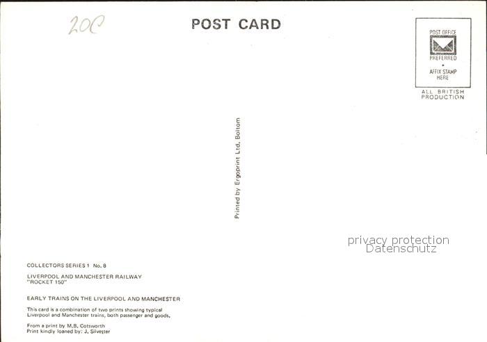 Eisenbahn Liverpool and Manchester Railway postalisch nicht gelaufen Erhaltung siehe scans