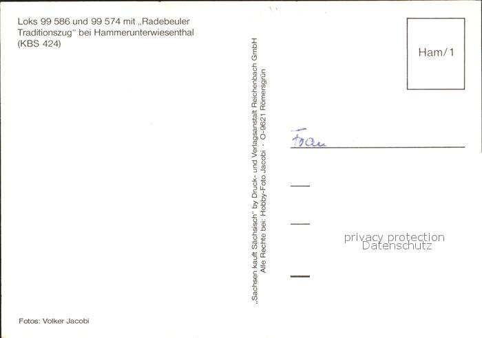 Eisenbahn Loks 99586 und 99574 Radebeuler Traditionszug Hammerunterwiesenthal postalisch nicht gelaufen Erhaltung siehe scans