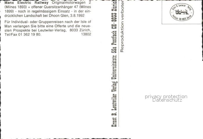 Eisenbahn Manx Electric Railway Dhoon Glen postalisch nicht gelaufen Erhaltung siehe scans