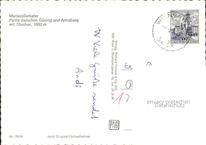 alte Postkarte Eisenbahn Mariazellerbahn Goesing Annaberg oetscher postalisch gelaufen Erhaltung siehe scans