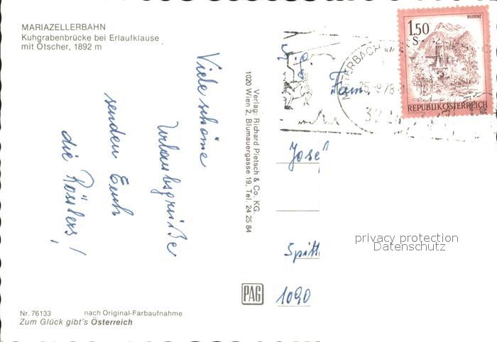 alte Postkarte Eisenbahn Mariazellerbahn Kuhgrabenbruecke Erlaufklause oetscher postalisch gelaufen Erhaltung siehe scans
