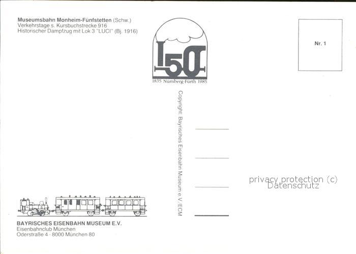 71511251 Eisenbahn Museumsbahn Monheim-Fünfstetten KatCode 22040000000300