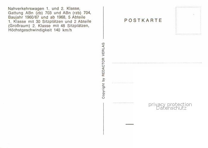 72804995 Eisenbahn Nahverkehrswagen 1. und 2. Klasse ABn 703 ABn 704 KatCode 22040000000300