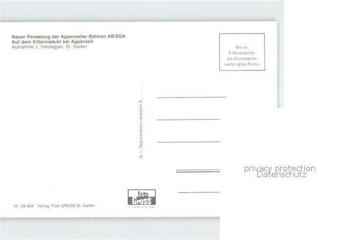 Eisenbahn Pendelzug Appenzeller Bahnen AB/SGA Sitterviadukt postalisch nicht gelaufen Erhaltung siehe scans