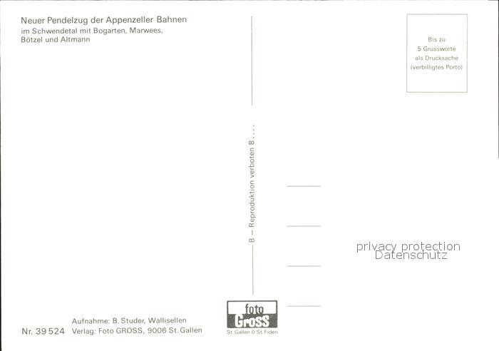 Eisenbahn Pendelzug Appenzeller Bahnen Schwendetal Bogarten Marwees postalisch nicht gelaufen Erhaltung siehe scans