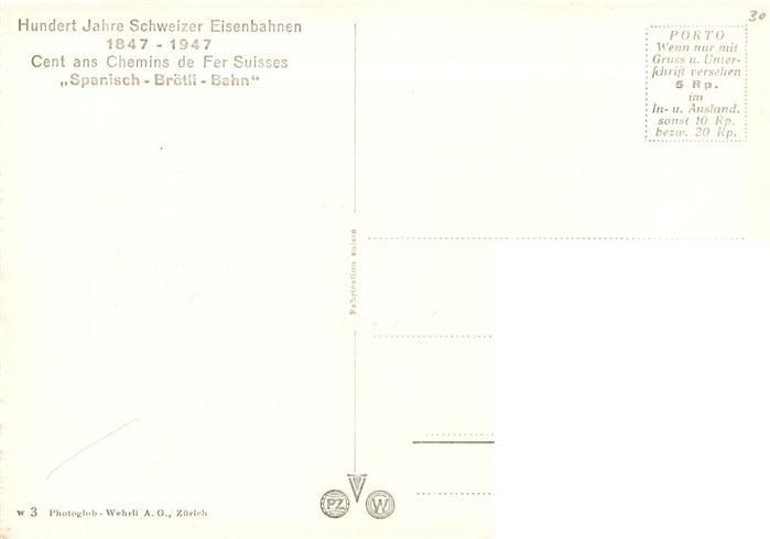 73929794 Eisenbahn Railway Chemin de Fer 100 Jahre Schweizer Eisenbahn Spanisch-Broetli-Bahn postalisch nicht gelaufen Erhaltung siehe scans [IrynaD87] KatCode: 22040000000300
