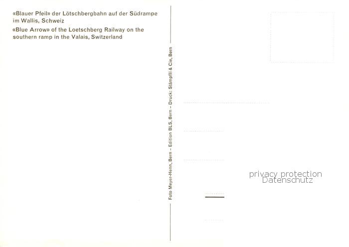 73908182 Eisenbahn Railway Chemin de Fer Blauer Pfeil Loetschbergbahn Wallis postalisch nicht gelaufen Erhaltung siehe scans [IrynaD87] KatCode: 22040000000300