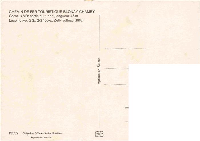 74027295 Eisenbahn Railway Chemin de Fer Blonay Chamby Tunnel Zell Todnau postalisch nicht gelaufen Erhaltung siehe scans [SanaeD93] KatCode: 22040000000300