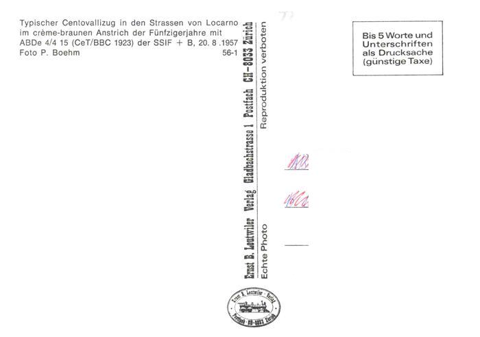 74026933 Eisenbahn Railway Chemin de Fer Centovallizug Locarno ABDe 4/4 15 postalisch nicht gelaufen Erhaltung siehe scans [IrynaD87] KatCode: 22040000000300