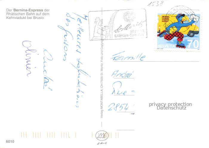 74137920 alte Postkarte Eisenbahn Railway Chemin de Fer Ferrovia– Bernina Express Rhaetische Bahn Brusio postalisch gelaufen Erhaltung siehe scans [SanaeD93] KatCode: 22040000000300