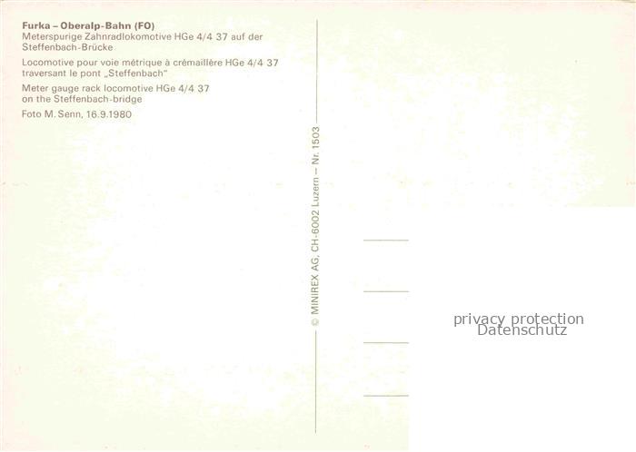 Eisenbahn Railway Chemin de Fer Ferrovia– Furka Oberalp Zahnradlokomotive