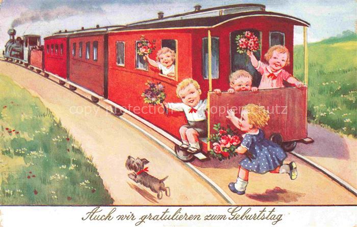 74089138 alte Postkarte Eisenbahn Railway Chemin de Fer Ferrovia– Kinder Hund Geburtstag Litho postalisch gelaufen Erhaltung siehe scans [SanaeD93] KatCode: 22040000000300