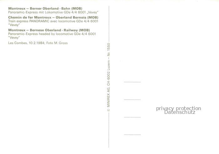 74134292 Eisenbahn Railway Chemin de Fer Ferrovia– Montreux Berner Oberland Bahn MOB Lokomotive Vevey Schweiz postalisch nicht gelaufen Erhaltung siehe scans [SanaeD93] KatCode: 22040000000300