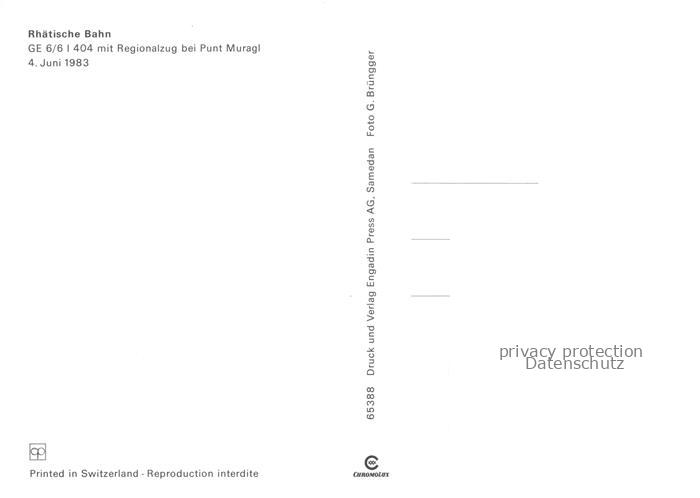 74134296 Eisenbahn Railway Chemin de Fer Ferrovia– Rhaetische Bahn Regionalzug Puntz Murag postalisch nicht gelaufen Erhaltung siehe scans [SanaeD93] KatCode: 22040000000300
