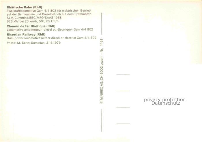 74134287 Eisenbahn Railway Chemin de Fer Ferrovia– Zeikraftlokomotive Schweiz postalisch nicht gelaufen Erhaltung siehe scans [SanaeD93] KatCode: 22040000000300