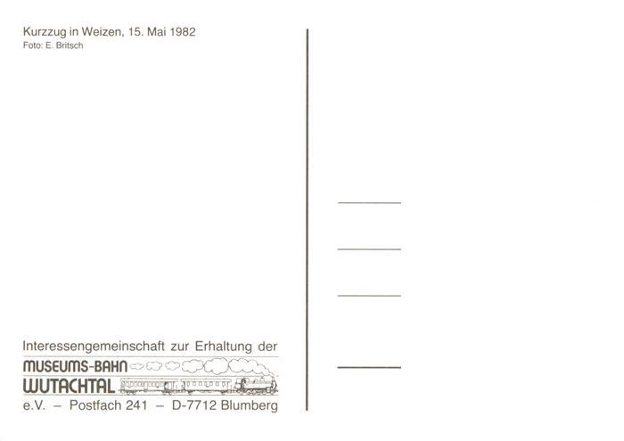 73904639 Eisenbahn Railway Chemin de Fer Kurzzug Weizen Wutachtal postalisch nicht gelaufen Erhaltung siehe scans [IrynaD87] KatCode: 22040000000300