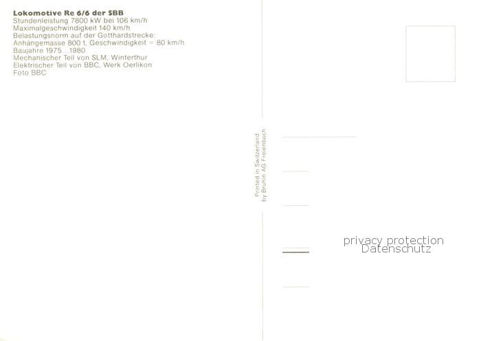 73900884 Eisenbahn Railway Chemin de Fer Lokomotive Re 6/6 SBB postalisch nicht gelaufen Erhaltung siehe scans [IrynaD87] KatCode: 22040000000300