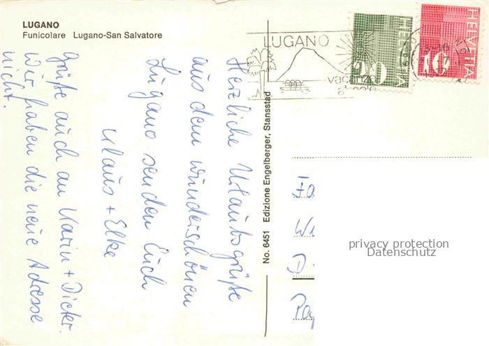74021422 alte Postkarte Eisenbahn Railway Chemin de Fer Lugano San Salvatore postalisch gelaufen Erhaltung siehe scans [SanaeD93] KatCode: 22040000000300
