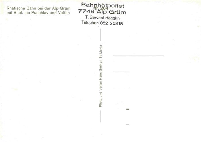 74027254 Eisenbahn Railway Chemin de Fer Rhaetische Alp Gruen Puschlav Veltlin Bahnhofbueffet postalisch nicht gelaufen Erhaltung siehe scans [IrynaD87] KatCode: 22040000000300