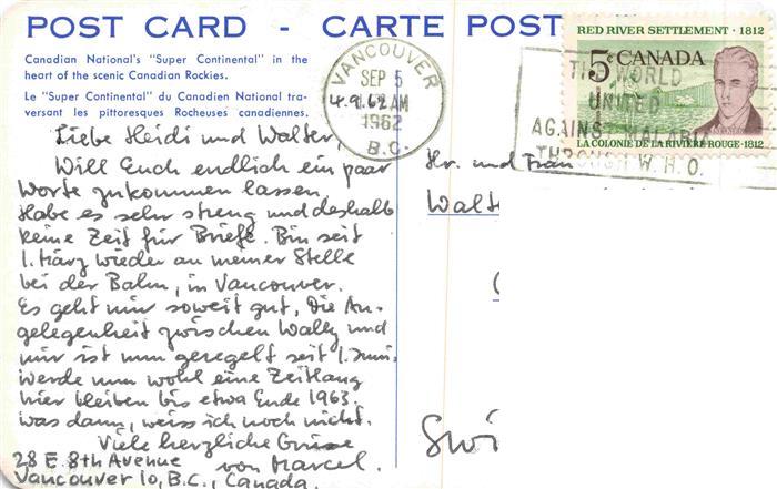 74025915 alte Postkarte Eisenbahn Railway Chemin de Fer Super Continental Canadien National postalisch gelaufen Erhaltung siehe scans [IrynaD87] KatCode: 22040000000300