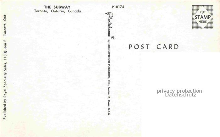 74011601 Eisenbahn Railway Chemin de Fer The Subway Toronto Ontario Canada postalisch nicht gelaufen Erhaltung siehe scans [IrynaD87] KatCode: 22040000000300