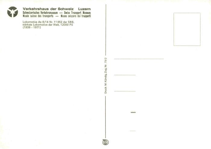 74027831 Eisenbahn Railway Chemin de Fer Verkehrshaus Schweiz Luzern Lokomotive Ae 8/14 nr. 11852 postalisch nicht gelaufen Erhaltung siehe scans [IrynaD87] KatCode: 22040000000300