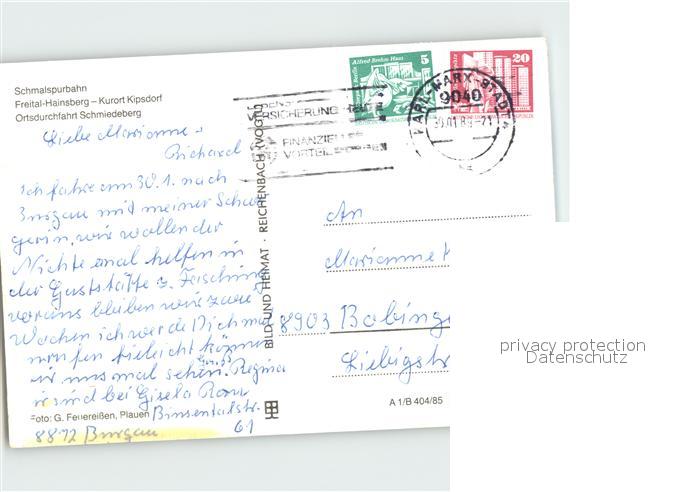 alte Postkarte Eisenbahn Schmalspurbahn Freital-Hainsberg-Kurort Kipsdorf Schmiedeberg postalisch gelaufen Erhaltung siehe scans