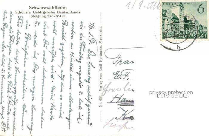 alte Postkarte Eisenbahn Schwarzwaldbahn Bachjoerg postalisch gelaufen Erhaltung siehe scans [PaolaD17]