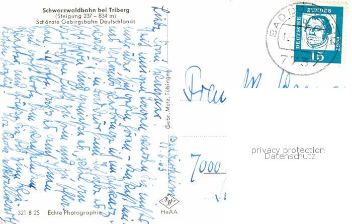 alte Postkarte Eisenbahn Schwarzwaldbahn Triberg postalisch gelaufen Erhaltung siehe scans [PaolaD17]