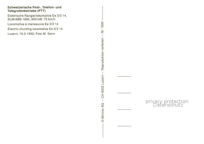 Eisenbahn Schweizerische Post PTT Rangierlokomotive Ee 14 postalisch nicht gelaufen Erhaltung siehe scans [IrynaD87]