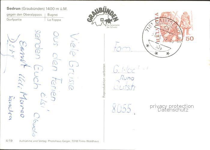 alte Postkarte Eisenbahn Sedrun Grischun Bugnei La Foppa postalisch gelaufen Erhaltung siehe scans