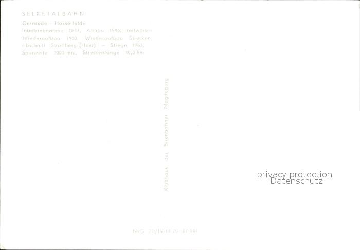 Eisenbahn Selketalbahn Gernrode-Hasselfelde postalisch nicht gelaufen Erhaltung siehe scans