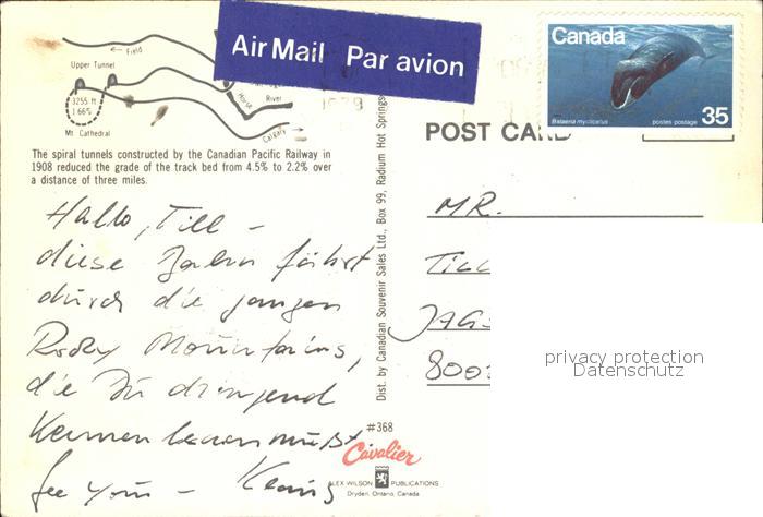 alte Postkarte Eisenbahn Spiral Tunnels Yoho National Park British Columbia postalisch gelaufen Erhaltung siehe scans