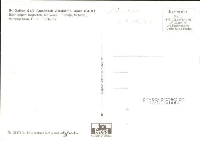 11956711 Eisenbahn St. Gallen-Gais-Appenzell-Altstätten Bahn SGA Ebenalp Schäfler KatCode 22040000000300