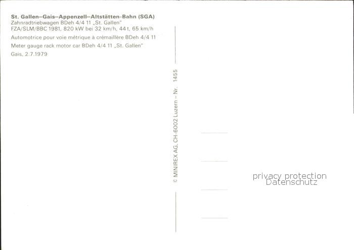 Eisenbahn St- Gallen-Gais-Appenzell-Altstaetten-Bahn Zahnradtriebwagen postalisch nicht gelaufen Erhaltung siehe scans